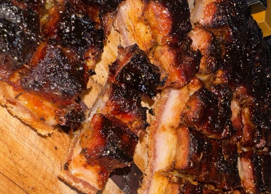 You can, but it’s tricky. You must cook the pork belly until it’s almost done. Cool it, then transfer the pork to an airtight container. When you’re ready to cook, put the burnt ends in the oven at 400°F. You can broil at the end for extra crunch.