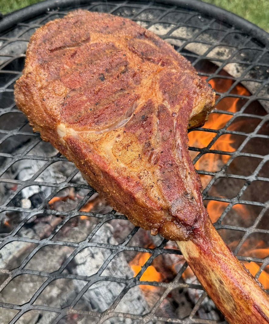 Stingray Tomahawk Ribeye: Charcoal grilled ribeye with Cuso’s all-natural Spicy Garlic Buffalo and Dirt Seasonings